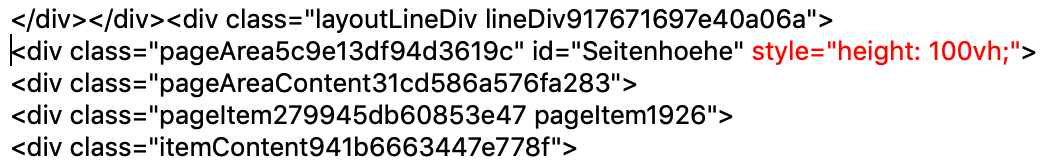 Benenne dazu zunächst den Seitenbereich, den du fixieren möchtest, damit du ihm später im Code leicher findest. Klick dann auf den Code-Tab und suche deinen Seitenbereich. Je weiter unten er sich auf der Website befindet, umso weiter unten erscheint er auch im Code-Tab.